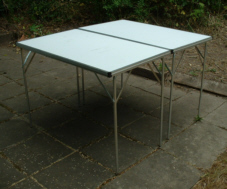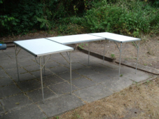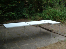 Dieses 3 tlg. Tische Set besteht aus: 2 Einzeltischen mit einklappbaren Füßen und einer Einlegeplatte ohne Füße um dazwischen einzuhängen.